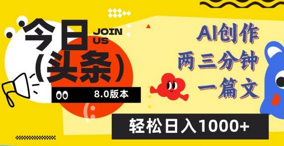 今日头条6.0玩法,AI一键创作改写,简单易上手,轻松日入1000+