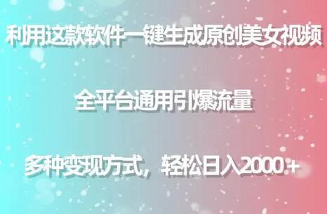 今天给大家带来最新项目“利用这款软件一键生成原创美女视频,全平台通用引爆流量,多种变现方式,轻松日入2000+”