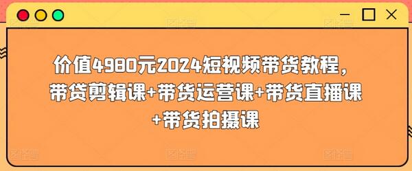 价值4980元2024短视频带货教程,带贷剪辑课+带货运营课+带货直播课+带货拍摄课