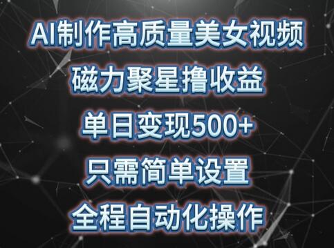 AI制作高质量美女视频,磁力聚星撸收益,单日变现500+,只需简单设置,全程自动化操作