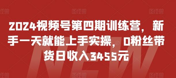 2024视频号第四期训练营,新手一天就能上手实操,0粉丝带货日收入3455元