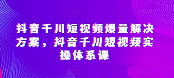 抖音千川短视频爆量解决方案,抖音千川短视频实操体系课