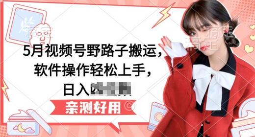 5月视频号野路子搬运,软件操作轻松上手,日入三位数