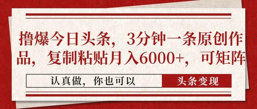 (14437期)撸爆今日头条,3分钟一条原创作品,复制粘贴月入6000+,可矩阵