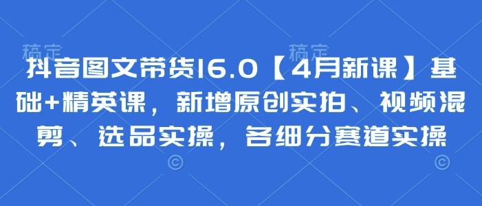 抖音图文带货16.0【4月新课】基础+精英课,新增原创实拍、视频混剪、选品实操,各细分赛道实操
