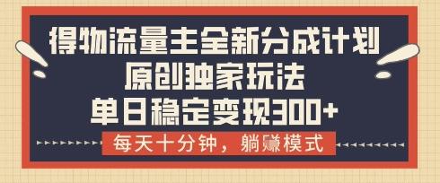 得物流量主全新分成计划模式,原创独家玩法,每天十分钟,躺挣模式,单日稳定变现3张+【揭秘】