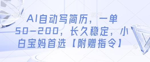 AI自动写简历,一单50-200,长久稳定,小白宝妈首选【附赠指令】