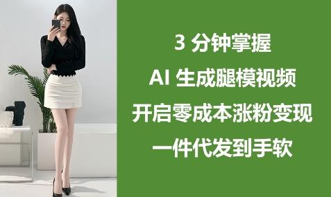 3分钟掌握AI生成腿模视频,开启零成本涨粉变现,一件代发到手软