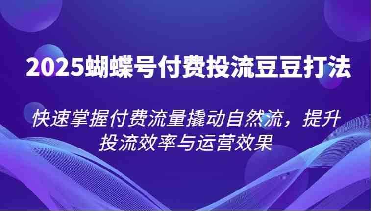 2025蝴蝶号付费投流豆豆打法,快速掌握付费流量撬动自然流,提升投流效率与运营效果