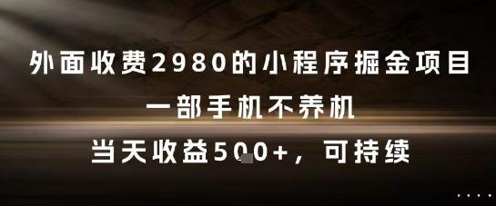 外面收费2980的小程序掘金项目,一部手机不养机,当天收益5张+,可持续【揭秘】