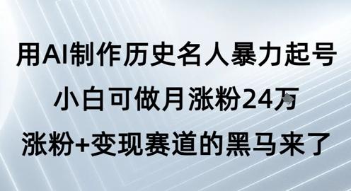 用AI制作历史名人暴力起号,小白可做月涨粉24W涨粉+变现赛道的黑马来了