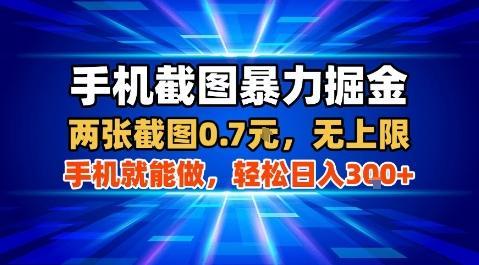 手机截图暴力掘金,两张截图0.7米,一部手机就能做,轻松日入3张+【揭秘】