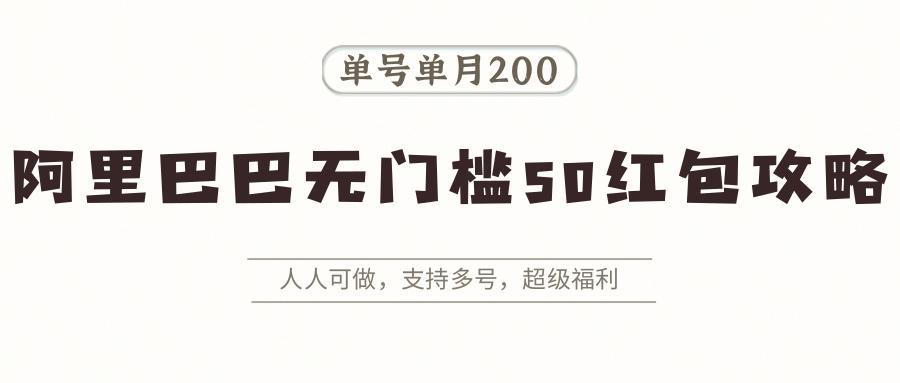 阿里巴巴无门槛50红包攻略,单号单月200。人人可做,支持多号,超级福利