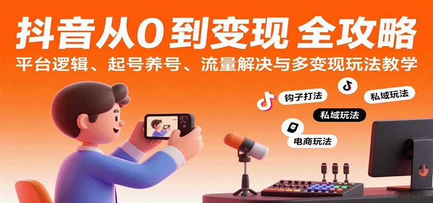 抖音从0到变现认知课:平台逻辑、起号养号、流量解决与多变现玩法教学