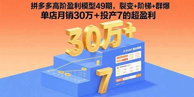 (15832期)拼多多高阶盈利模型49期,裂变+阶梯+群爆 单店月销30万+投产7的超盈利