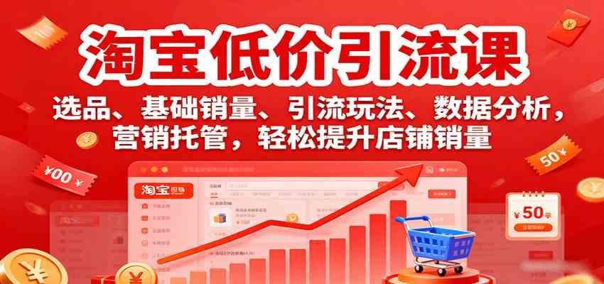 淘宝低价引流课,选品、基础销量、引流玩法、数据分析,营销托管,轻松提升店铺销量