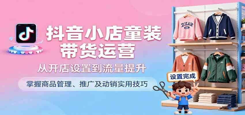 抖音小店童装带货运营,从开店设置到流量提升,掌握商品管理、推广及动销实用技巧