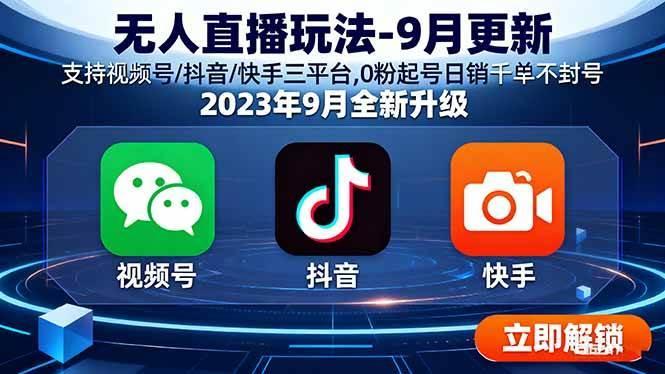 (16136期)无人直播玩法-9月更新 支持视频号/抖音/快手三平台,0粉起号日销千单不封号