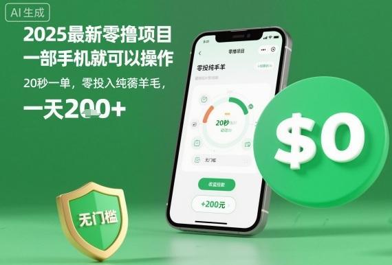 2025最新零撸项目,一部手机就可以操作,20秒一单,零投入纯薅羊毛,无门槛,一天200+【揭秘】