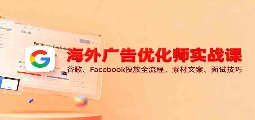 “海外广告投放训练营”是一门针对零基础学员的系统化海外广告优化课程,聚焦谷歌广告平台操作、Facebook广告投放、账户优化技巧、面试求职指导四大核心模块。课程从广告术语、Google广告网络原理切入,涵盖UAC广告、搜索广告、机器学习应用等谷歌广告全流程,并深入讲解Facebook账号结构、广告优化及ROI提升方法,结合简历撰写、面试技巧等求职指导,帮助学员快速掌握海外广告投放能力。