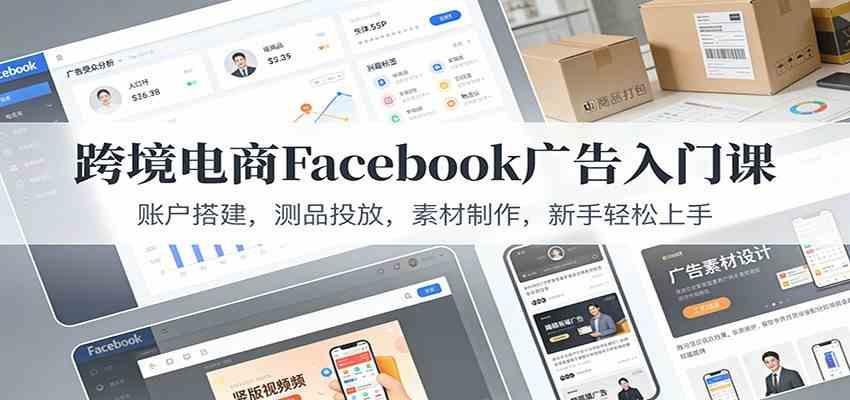 跨境电商Facebook广告入门课:账户搭建,测品投放,素材制作,新手轻松上手