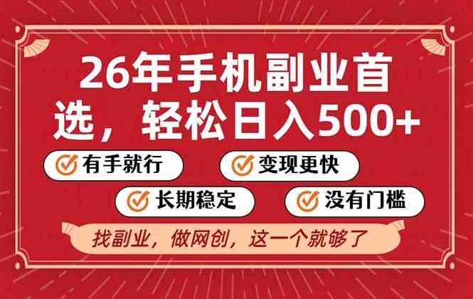 (17194期)26年首选的副业,无操作门槛,稳稳日入500+,可矩阵放大