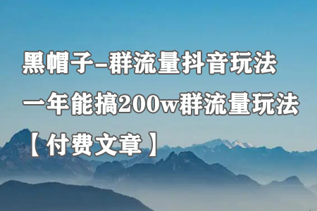 黑帽子-群流量抖音玩法,一年能搞200w群流量玩法【付费文章】