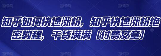 知乎如何快速涨粉,知乎快速涨粉绝密教程,干货满满【付费文章】