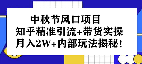 中秋节风口项目:知乎精准引流+带货实操,月入2W+内部玩法揭秘!
