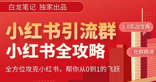 【白龙笔记】价值980元的《小红书运营和引流课》,日引100高质量粉