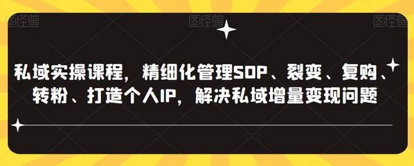 私域实操课程,精细化管理SOP、裂变、复购、转粉、打造个人IP,解决私域增量变现问题