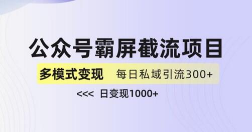 公众号霸屏截流项目+私域多渠道变现玩法,全网首发,日入1000+