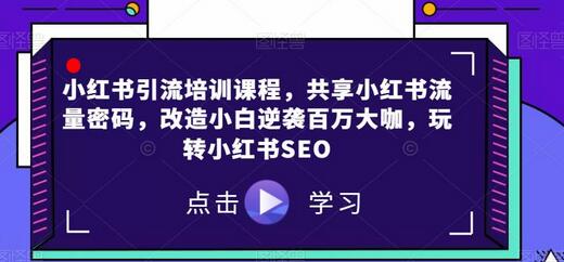 小红书引流培训课程,共享小红书流量密码,改造小白逆袭百万大咖,玩转小红书SEO
