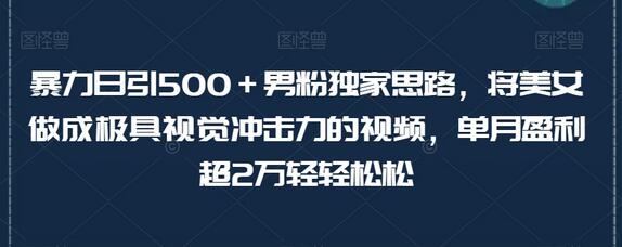 暴力日引500+男粉独家思路,将美女做成极具视觉冲击力的视频,单月盈利超2万轻轻松松
