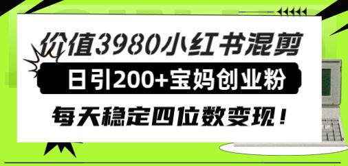 价值3980小红书混剪日引200+宝妈创业粉,每天稳定四位数变现!