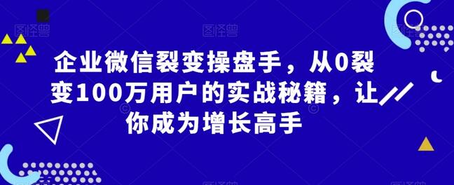 企业微信裂变操盘手,从0裂变100万用户的实战秘籍,让你成为增长高手