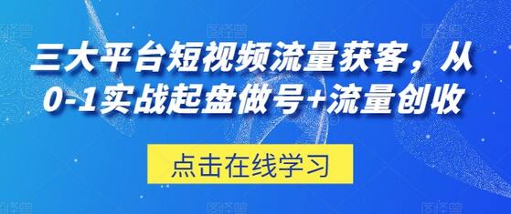三大平台短视频流量获客,从0-1实战起盘做号+流量创收