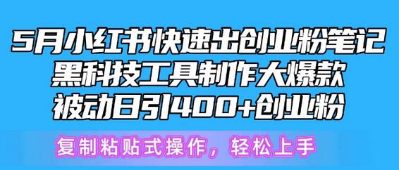 5月小红书快速出创业粉笔记,黑科技工具制作大爆款,被动日引400+创业粉