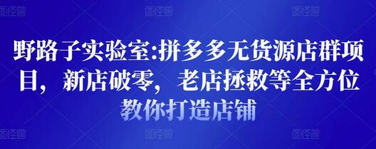 野路子实验室:拼多多无货源店群项目,新店破零,老店拯救等全方位教你打造店铺