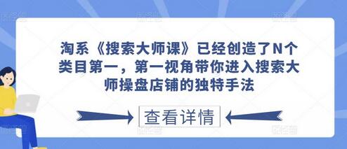 淘系《搜索大师课》已经创造了N个类目第一,第一视角带你进入搜索大师操盘店铺的独特手法