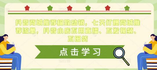 抖音商城推荐极致动销,七天打爆商城推荐流量,抖音小店不用直播、不发视频、不囤货
