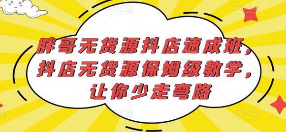 胖哥无货源抖店速成班,抖店无货源保姆级教学,让你少走弯路
