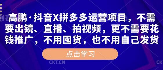 高鹏·抖音X拼多多运营项目,不需要出镜、直播、拍视频,不需要花钱推广,不用囤货,不用自己发货
