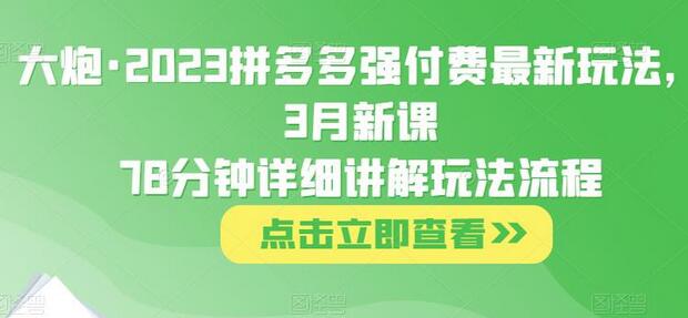 大炮·2023拼多多强付费最新玩法,3月新课78分钟详细讲解玩法流程
