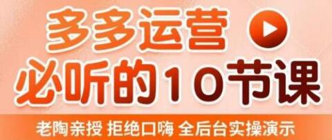 老陶电商·拼多多运营必听10节课,拒绝口嗨,全后台实操演示,花的少,赚得多,爆款更简单
