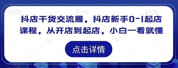 抖店干货交流圈,抖店新手0-1起店课程,从开店到起店,小白一看就懂