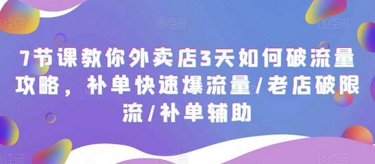 7节课教你外卖店3天如何破流量攻略,补单快速爆流量/老店破限流/补单辅助