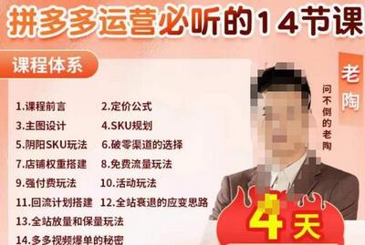 老陶电商·拼多多运营必听14节课,老陶亲授,拒绝口嗨,全后台实操演示