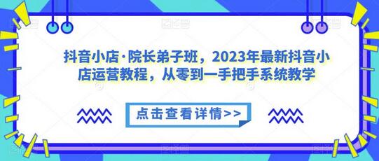抖音小店·院长弟子班,2023年最新抖音小店运营教程,从零到一手把手系统教学
