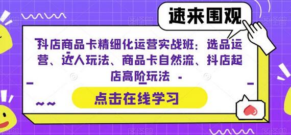 抖店商品卡精细化运营实战班:选品运营、达人玩法、商品卡自然流、抖店起店高阶玩法